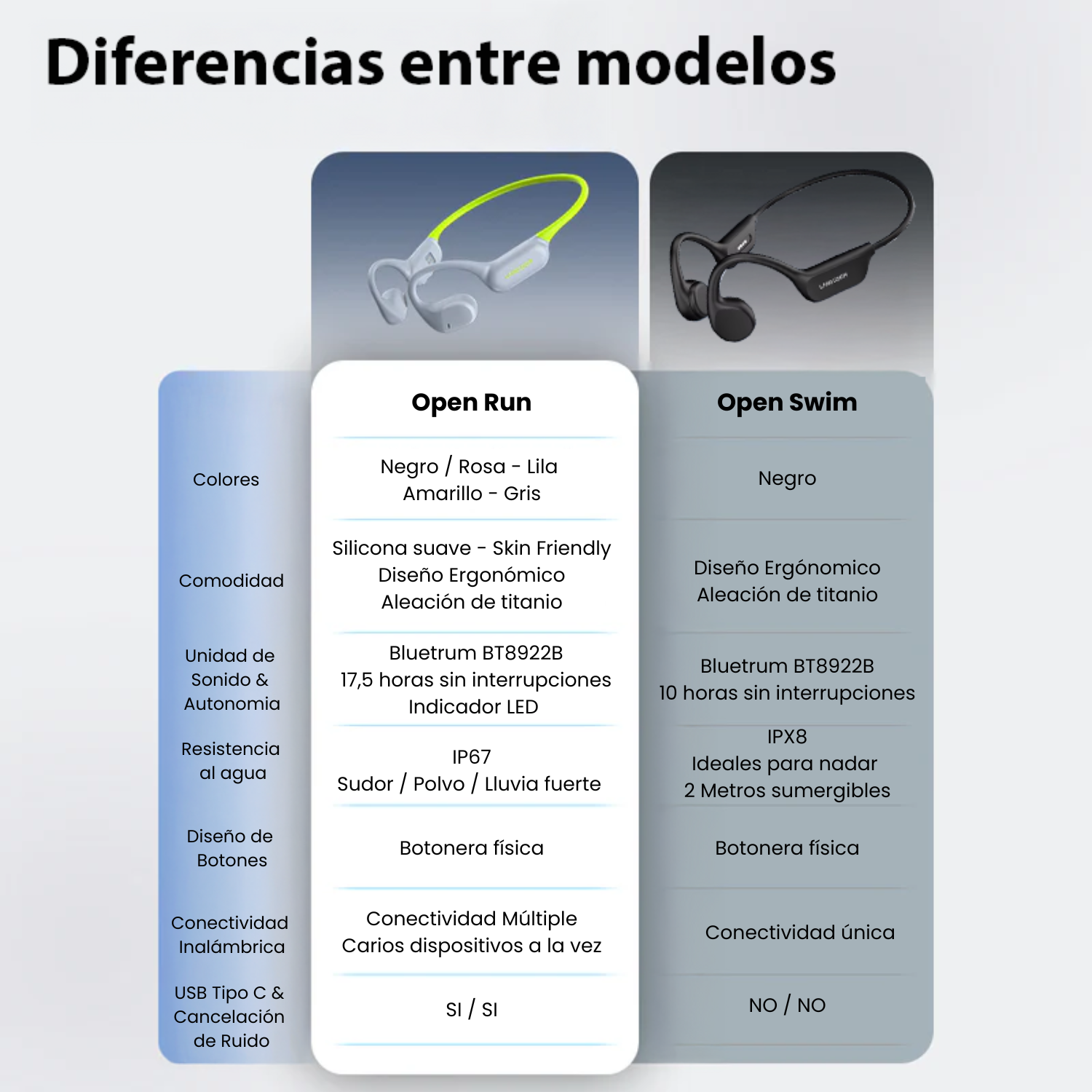 Descubre la revolución del sonido deportivo con los auriculares LANGSDOM Open Ear, diseñados para quienes exigen lo mejor: comodidad extrema, sujeción perfecta y un sonido vibrante que no aísla del entorno. Con tecnología de conducción ósea, resistencia total al agua IPX8 y una memoria interna de 32GB, podrás correr, nadar o surfear al ritmo de tu música favorita... ¡sin necesidad de móvil!