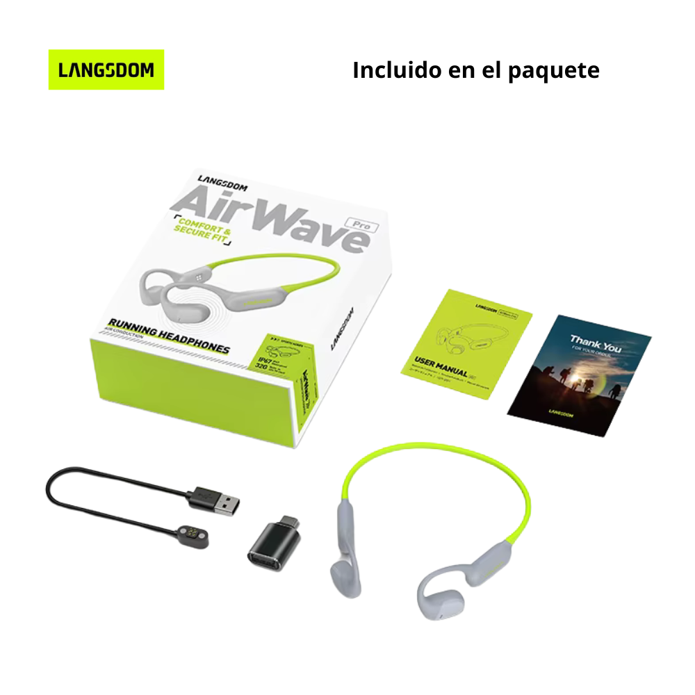 Descubre el equilibrio perfecto entre innovación, rendimiento y libertad con los Langsdom Open Run - AirWave Pro. Estos auriculares a diferencia de los de conducción ósea hace que el sonido viaje por el aire dejando el oído libre, han sido diseñados para quienes viven el deporte al máximo. Ya sea que corras, nades o pedalees bajo la lluvia, la música nunca dejará de acompañarte.
